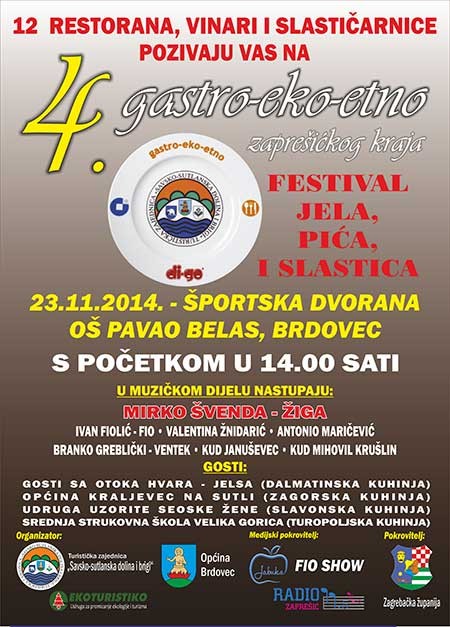 srdačno Vas sve pozivamo na našu manifestaciju IV. "Gastro-eko-etno" koja će se održati u nedjelju, 23.11. s početkom u 14.00 sati u OŠ Pavla Belasa u Brdovcu u prostorijama sportske dvorane uz bogatu gastronomsku ponudu i glazbeni program. Ostale informacije možete vidjeti na plakatu. Veselimo se Vašem dolasku!!