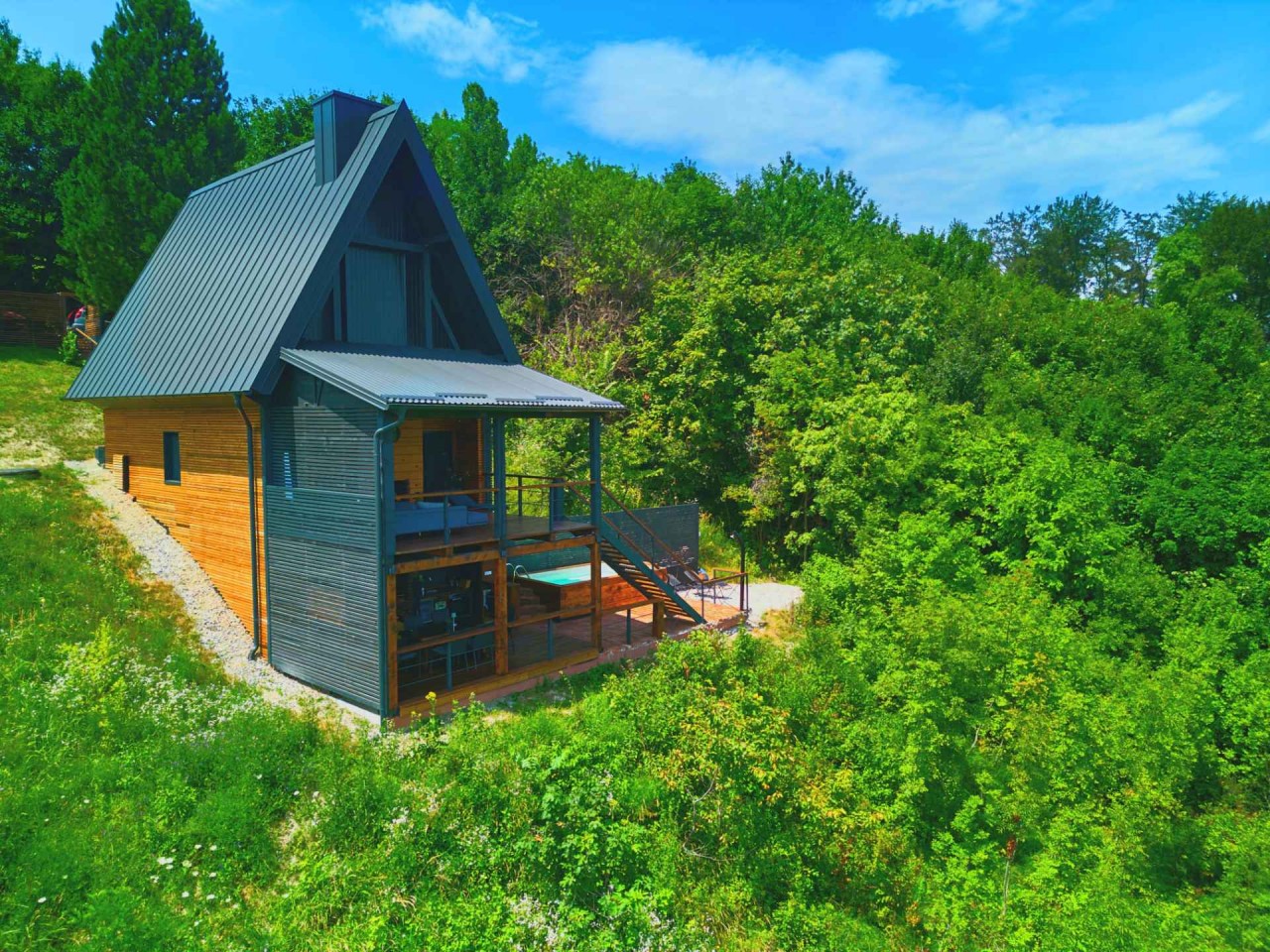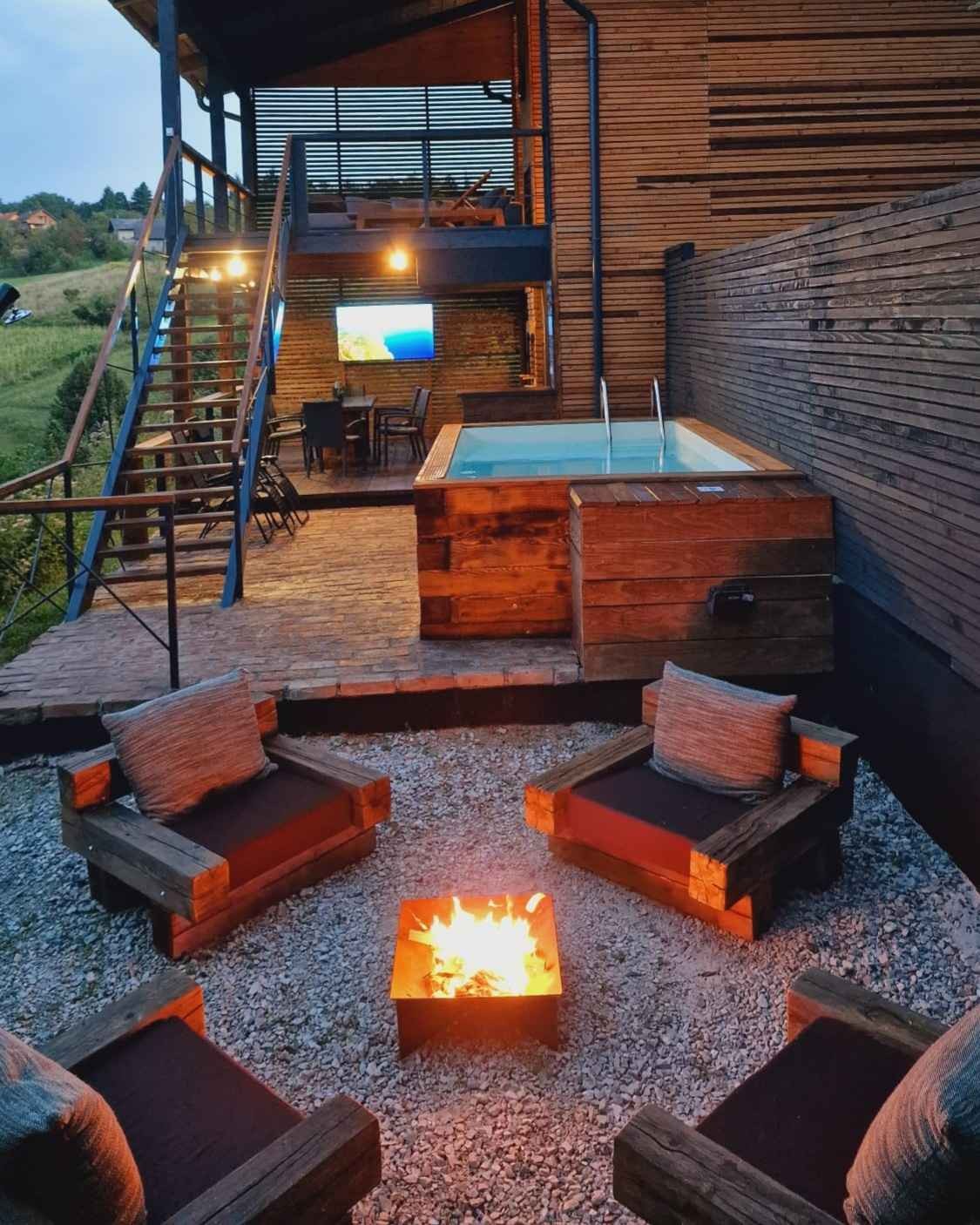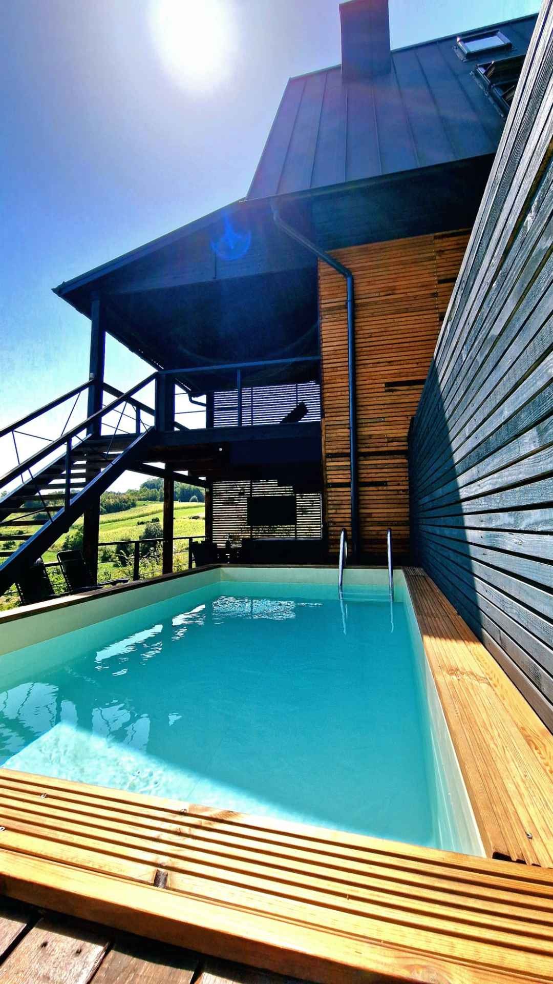 Uz panoramski pogled s prostranih i udobnih terasa, Deck 55 nudi brojne pogodnosti koje će vaš boravak učiniti posebnim. Uživajte u privatnom bazenu, sauni i jacuzziju, idealnim za opuštanje u bilo koje doba godine. Bilo da se želite rashladiti tijekom ljetnih dana ili uživati u zimskim večerima, ova kuća pruža sve što vam treba za nezaboravan odmor, a sve to na samo 15 minuta od Zagreba.